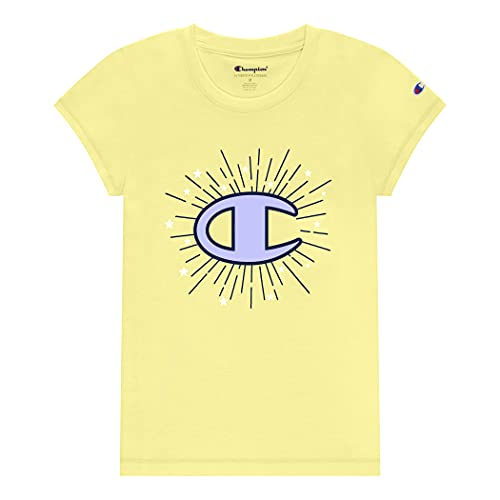 Champion Girls Heritage Short Sleeve Script Logo Tee Shirt Big and Little Girls (Small, Honey Yellow Sunburst)