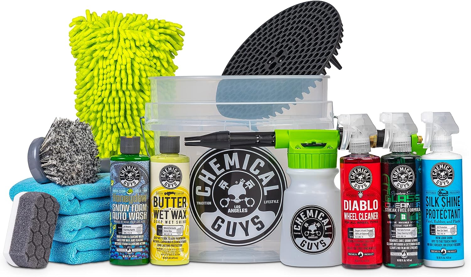 Chemical Guys HOL126 14-Piece Arsenal Builder Car Wash Kit with Foam Gun, Bucket and (5) 16 oz Car Care Cleaning Chemicals (Works w/Garden Hose)