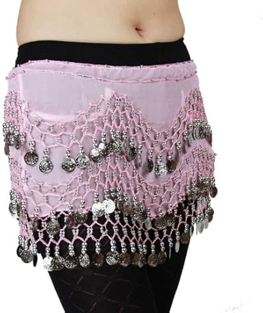 Chiffon Dangling Silver Coins Belly Dance Hip Scarf, Vogue Style -pink