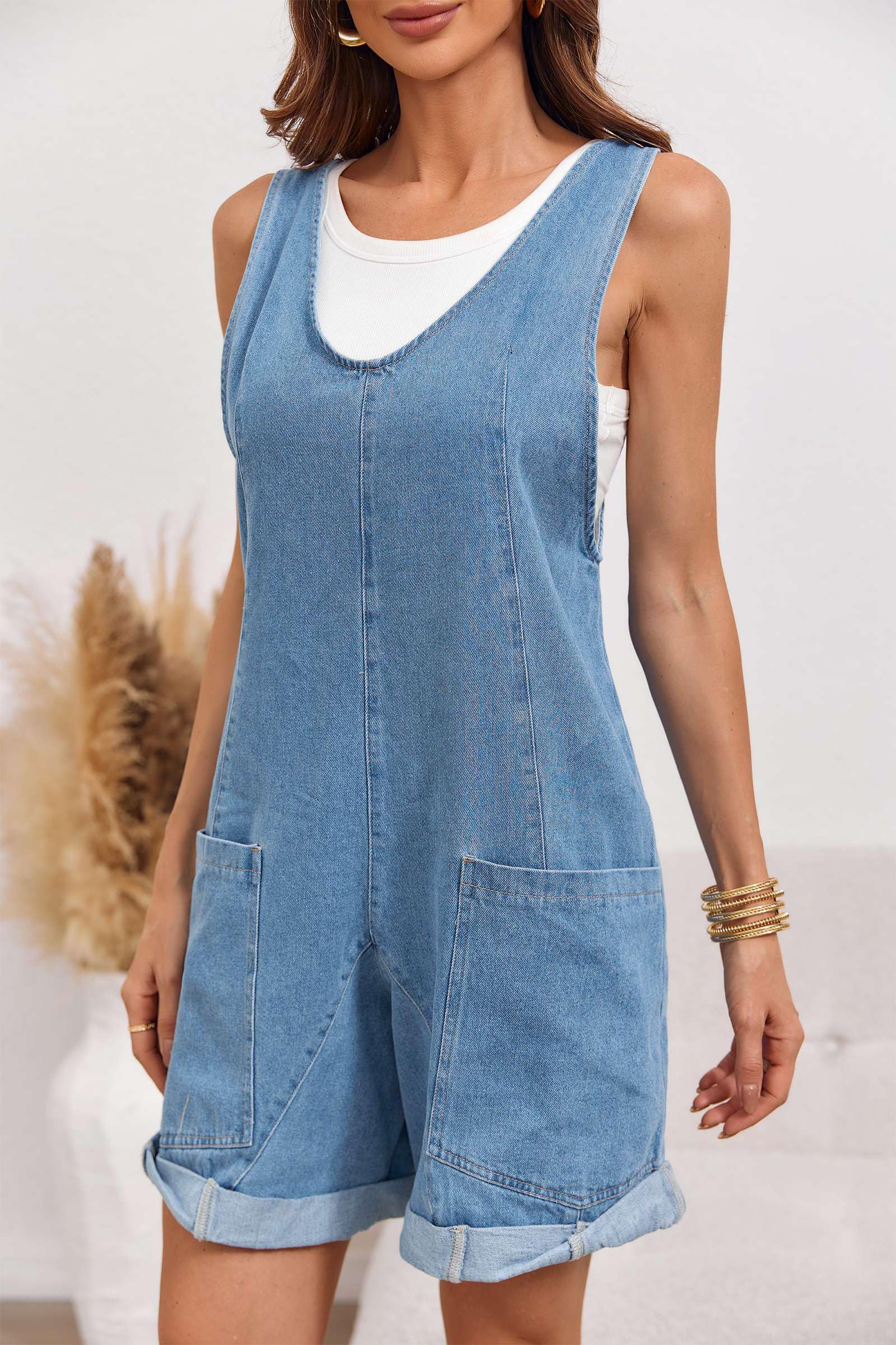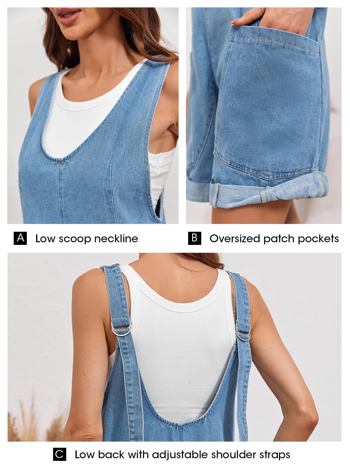 Cicy Bell Womens Summer Denim Rompers Casual Sleeveless V Neck Jeans Short Jumpsuits with Pockets