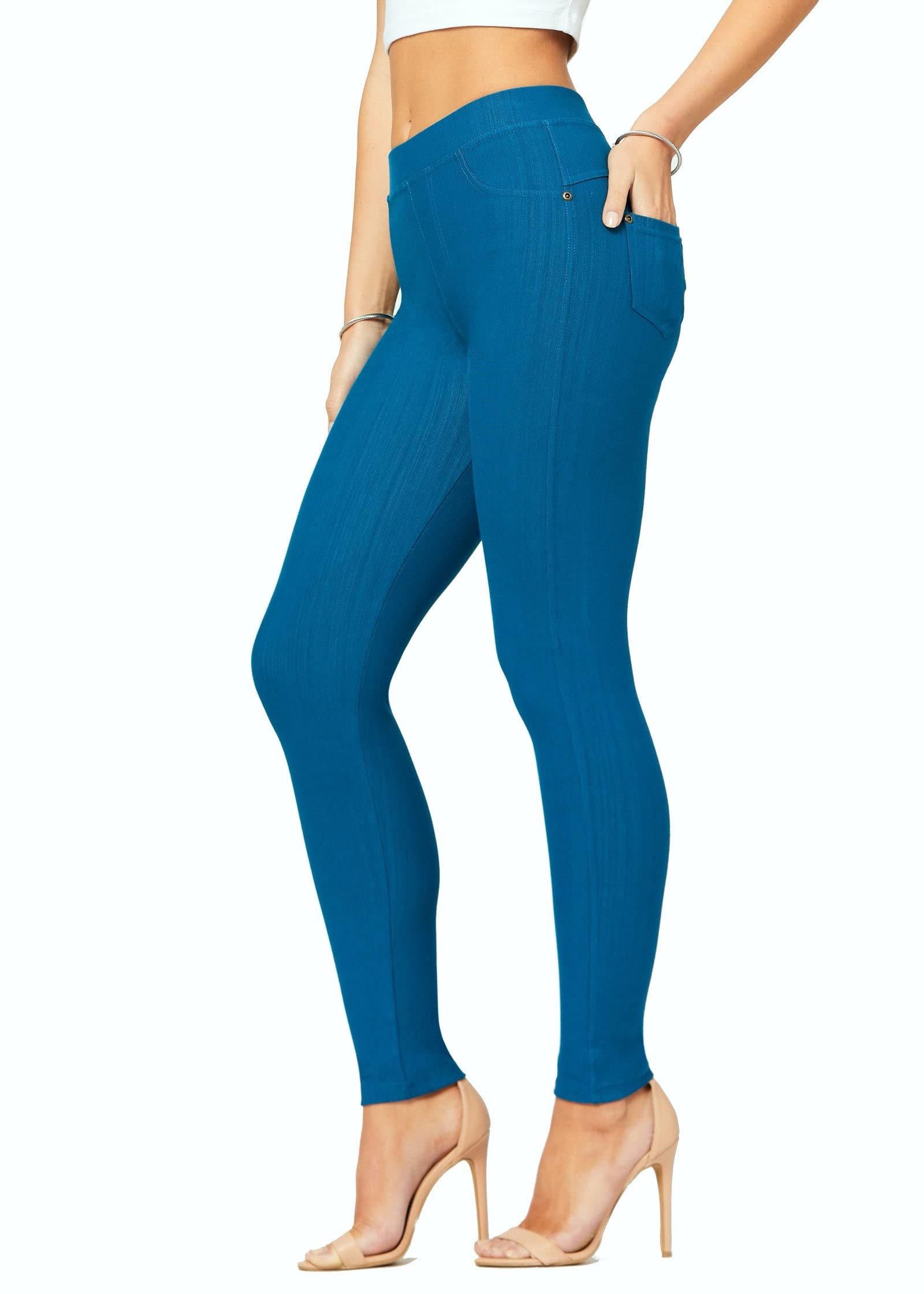 Conceited Premium Stretch Soft High Waisted Jeggings for Women - Denim - Cotton Stretch Blend - Teal Blue - 18-24