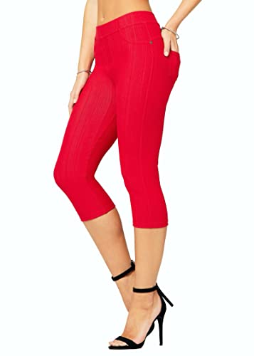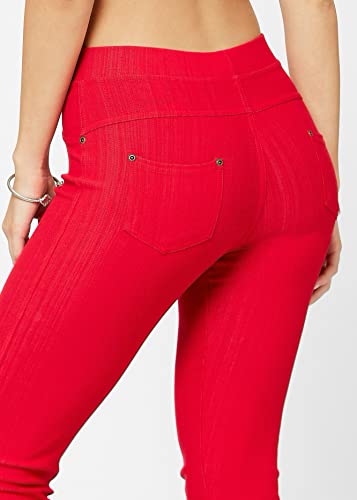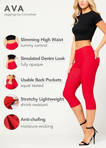 Conceited Premium Stretch Soft High Waisted Jeggings for Women - Denim Leggings - Cotton Blend - Red - 18-24