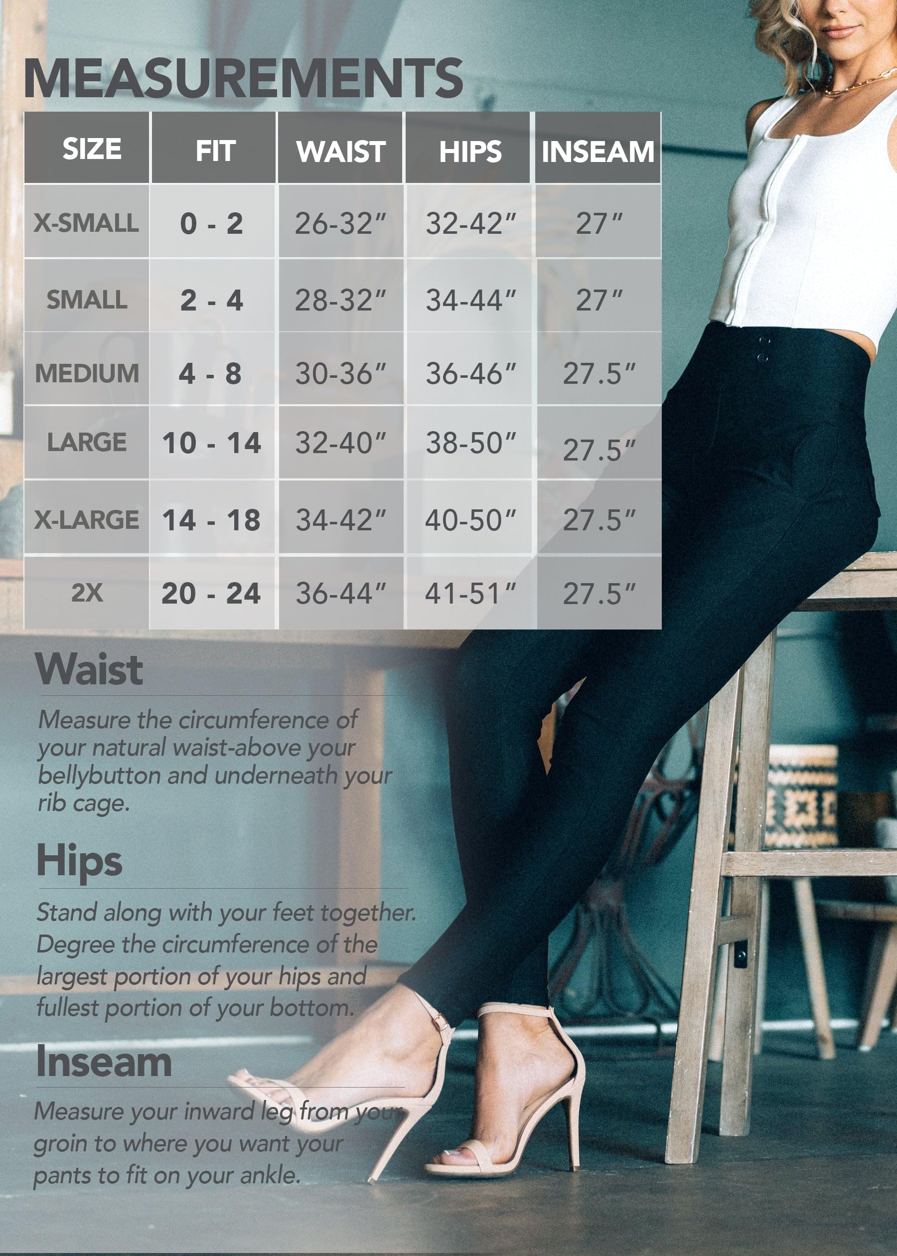 • These premium full length dress pants with pockets are made for the modern woman. Fitted through waist and hips, with the perfect amount of butt lifting shape control