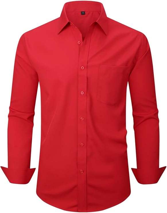 corfty Men Long Sleeve Dress Shirt - Regular Fit Stretch Free-Wrinkle Casual Button Down Shirt