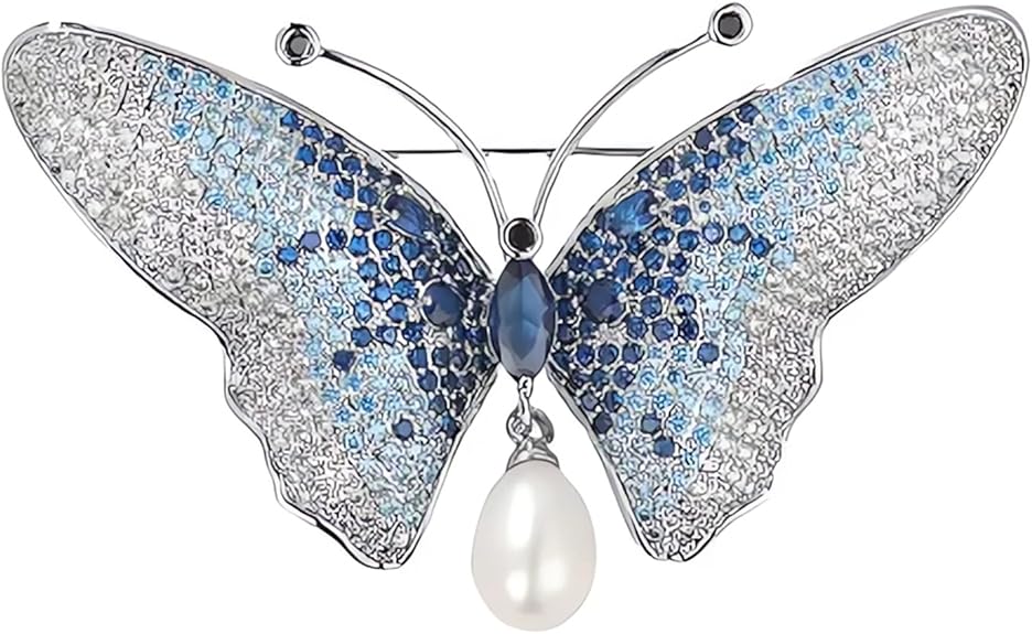 Crystals Brooch _‹ÐBlue Enchantress_‹� Platinum Plated Elegant Butterfly Fashion Pin Gift for Women Girls for Clothing Bag Decor - Qiaofulicheerfully (Blue-23)