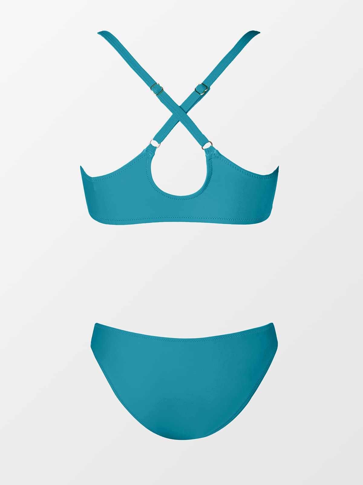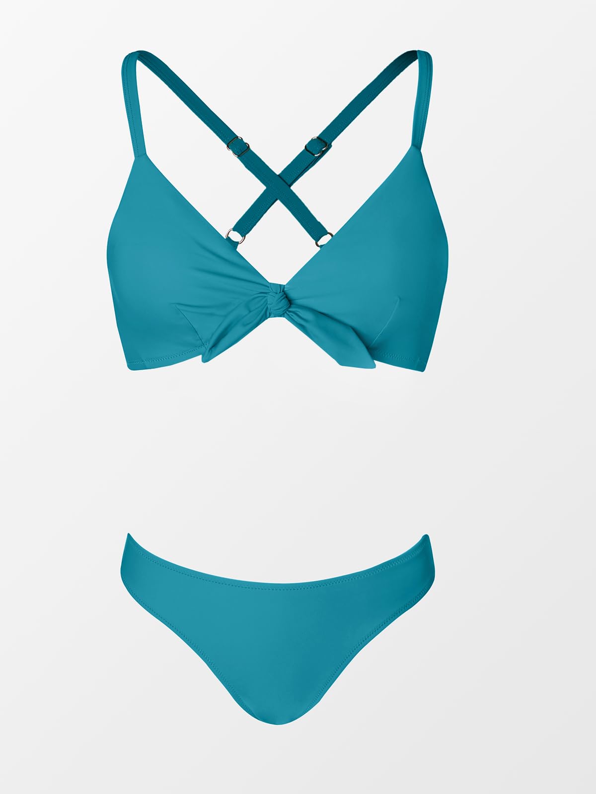 • Design: Lounge poolside on your next vacation in this bikini set featuring a top with a knot detail, v neck, and adjustable straps, crisscross back, as well as a pair of low waist bottoms and classic bum coverage.