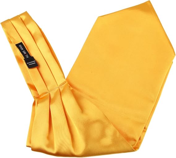 Dan Smith Gold Stylish Long-Self Cravat Scarf Satin Long-Self Day Ascot 135-Cm-Long Tall-Plus-Size C.C.AQ.G.010 Gold Solid