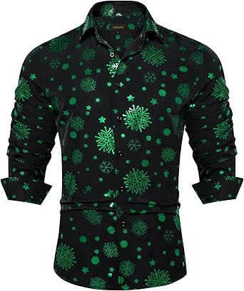 DiBanGu Christmas Shirts for Men Button Down Shirts Long Sleeve Dress Shirts for Party Holiday Santa Snowflake Shirt