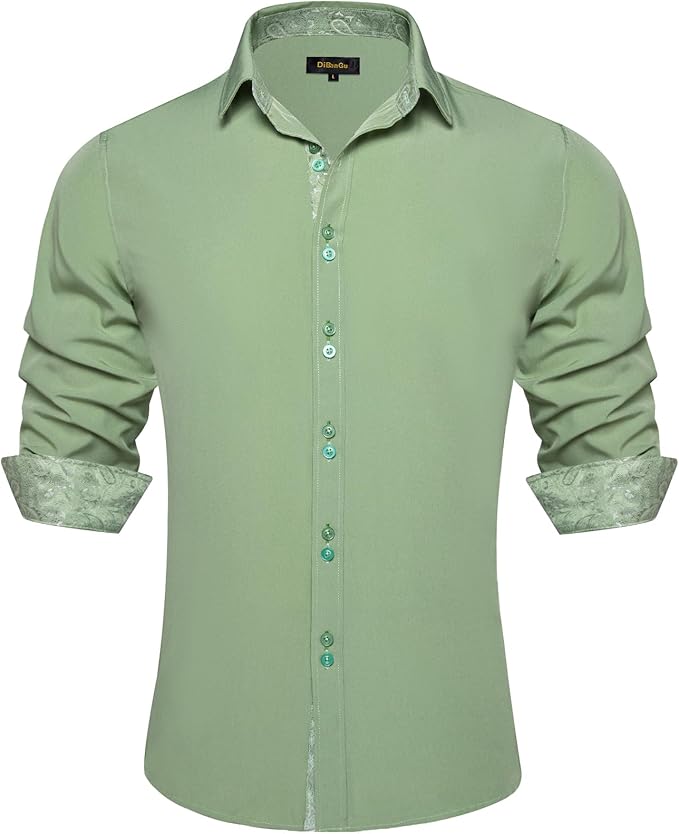 DiBanGu Men's Long Sleeve Dress Shirt Regular Fit Button Down Shirts with Collar Pin Inner Contrast Color Shirt
