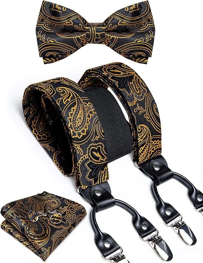 DiBanGu Paisley Bow Tie and Supenders for Men Tuxedo Heavy Duty 6 Clips Suspender Adjustable Y-Shape Mens Trouser Braces