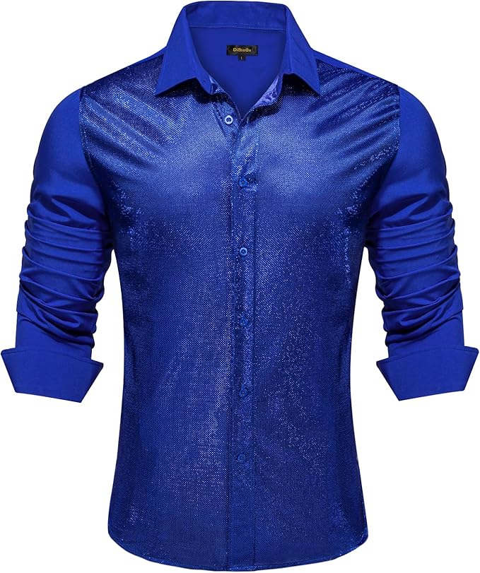 DiBanGu Shiny Metallic Dress Shirt Mens Button Down Shirts Casual Regular Fit Long Sleeve Shirts for Wedding Party