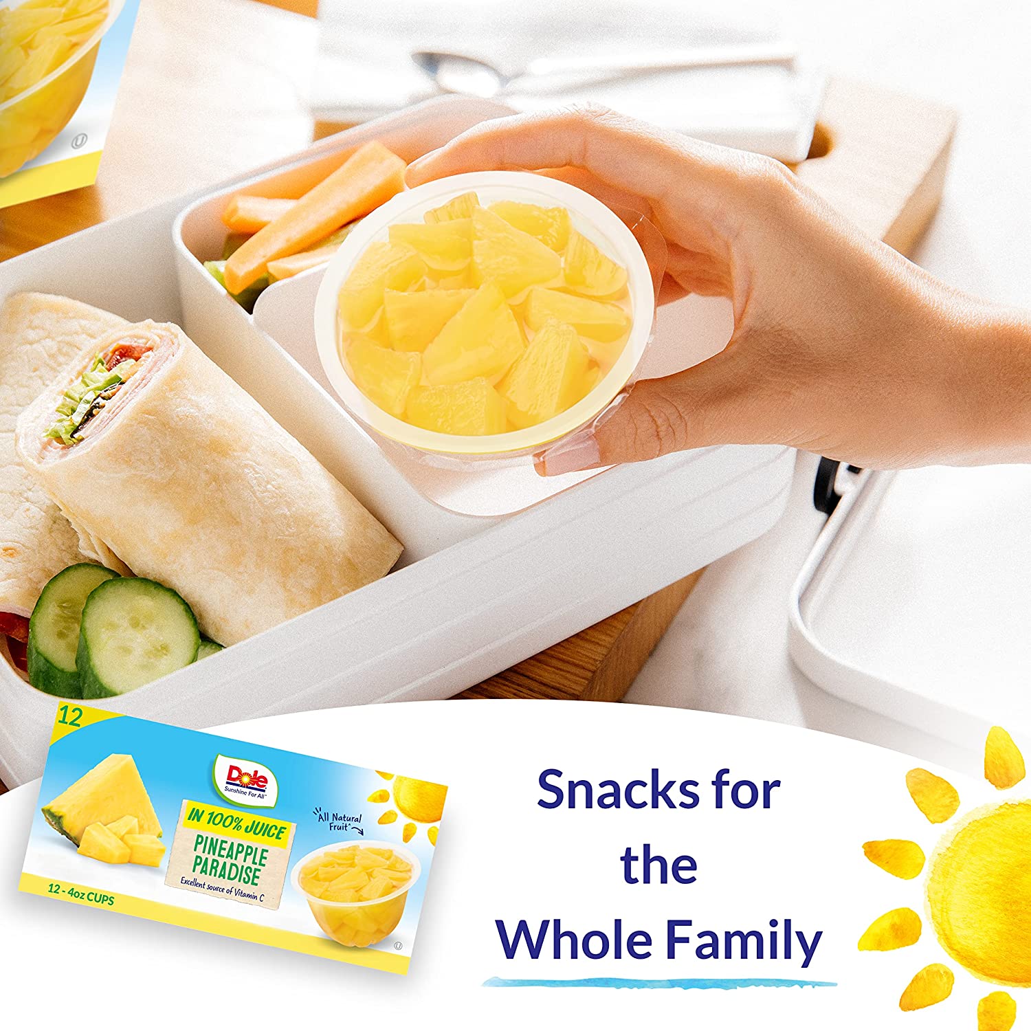 Dole Pineapple Paradise Pineapple Tidbits in a Blend of 100% Fruit Juices, Gluten Free Healthy Snack, 4 Oz Fruit Bowls, 12 Cups