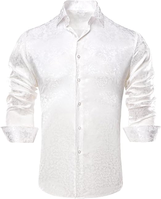Dubulle Mens Long Sleeve Dress Shirt Floral Paisley Casual Button Down Shirts for Men Wedding Suit, White, XX-Large