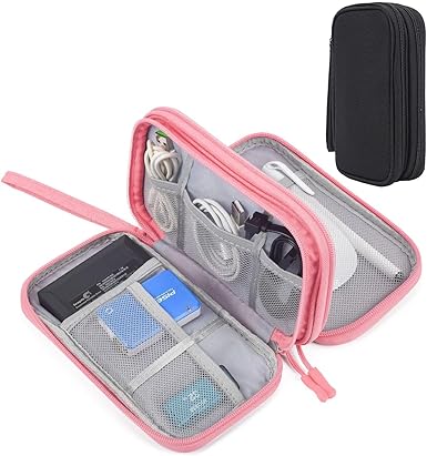 Electronics Accessories Organizer Pouch Bag, 2 Pack Travel Universal Organizer for Cable, Charger, Phone, SD Card, Business Travel Gadget Bag With Zipper (Pink and Black)