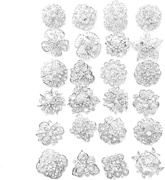 Ezing Lot 24pc Shining Rhinestone Crystal Brooches Pins DIY Wedding Bouquet Kit