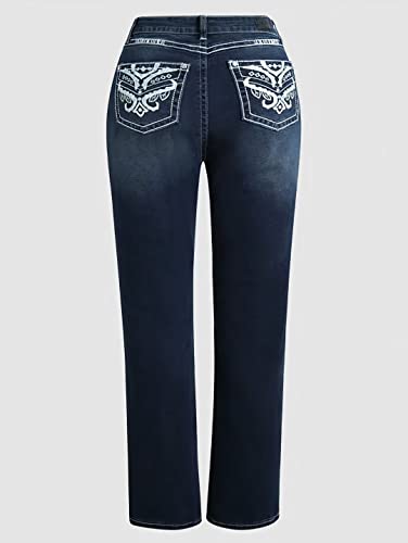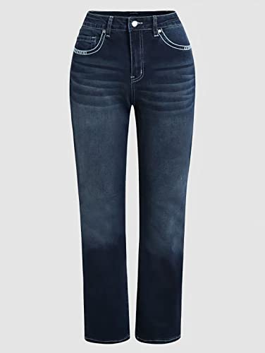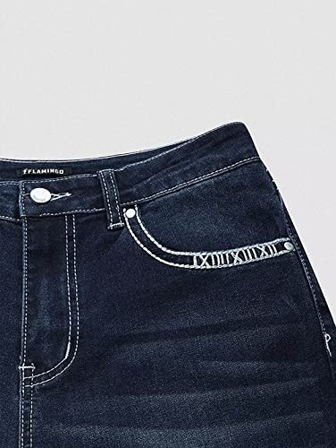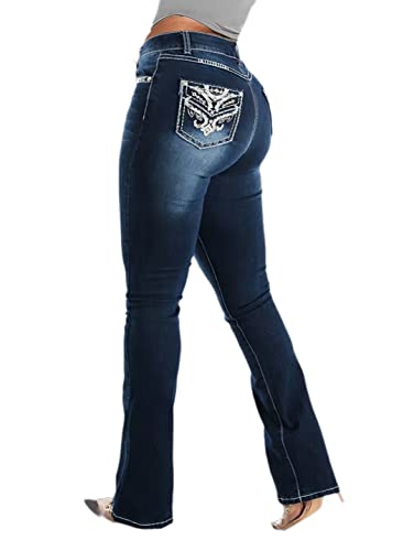 Flamingals Vintage Mid Waist Flap Pocket Bootcut Flare Leg Jeans for Women Deep Navy Blue S