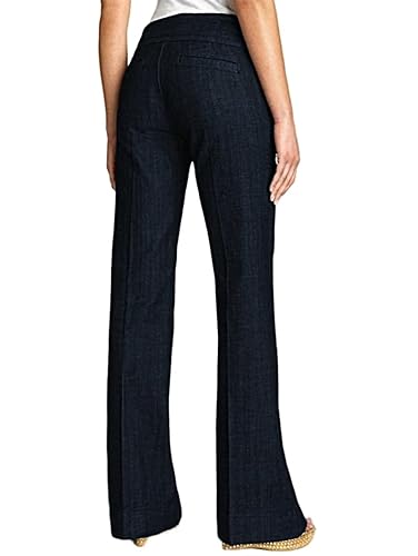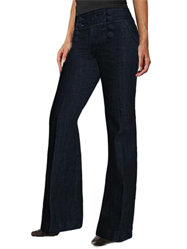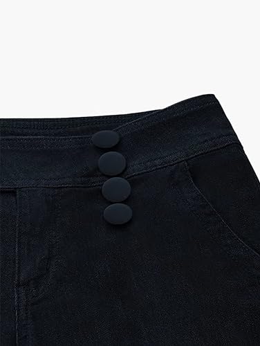 Flamingals Women’s Jeans Solid Double Breasted Pocket Straight Leg Jeans Dark Blue M