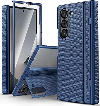 for Samsung Galaxy Z Fold 6 Case with Stand & HD Screen Protector & Hinge Protection, Lightweight Hard Cover Shockproof Rugged Phone Case for Samsung Z Fold 6 2024, Blue