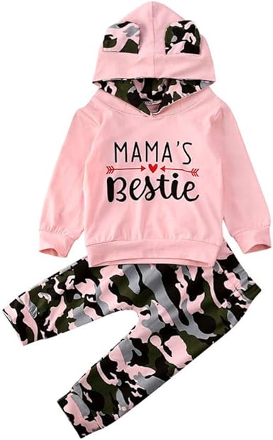FYBITBO 2Pcs Baby Girls Fall Winter Clothes Mamas Bestie Hoodie Sweatshirt Tops & Camo Pants Outfits Clothing Sets