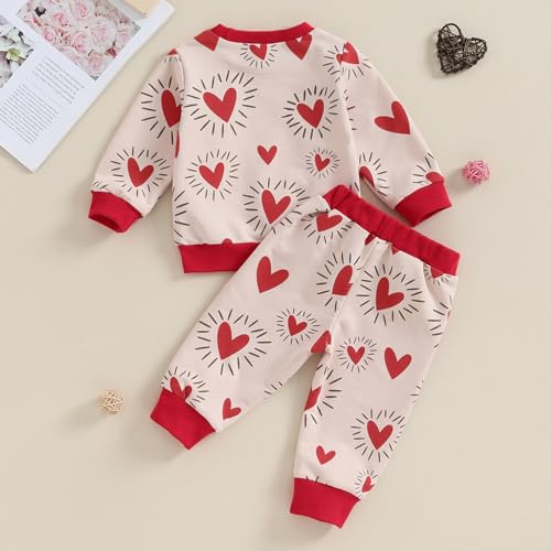 FYBITBO Valentines Day Baby Boy Girl Clothes Heart Print Long Sleeve Sweatshirt Top Shirt+Pants Fashion Toddler Sweatsuit Outfits (Red Baby Valentines Day Outfit, 18-24 Months)