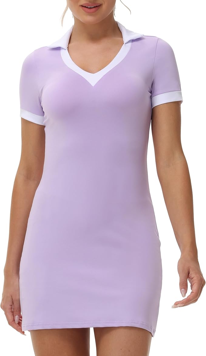 Golf Tennis Dress Womens Colorblock V Neck Athletic Dress with Shorts Two Piece Workout Dress