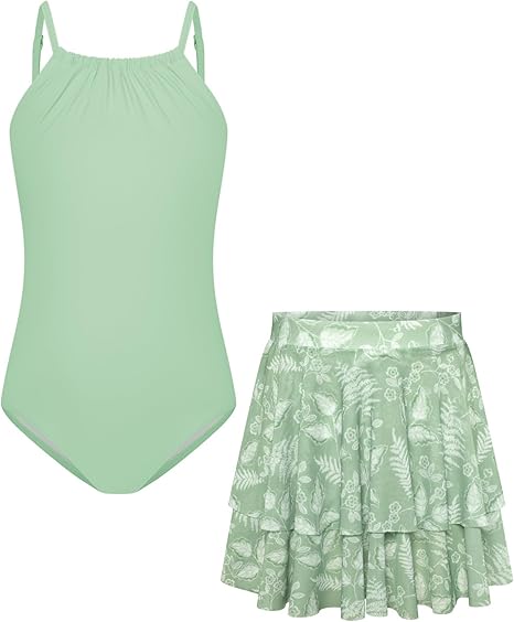 GRACE KARIN Girls Swimsuit with Skirt One Piece Bathing Suit Swimwear 6-14Y