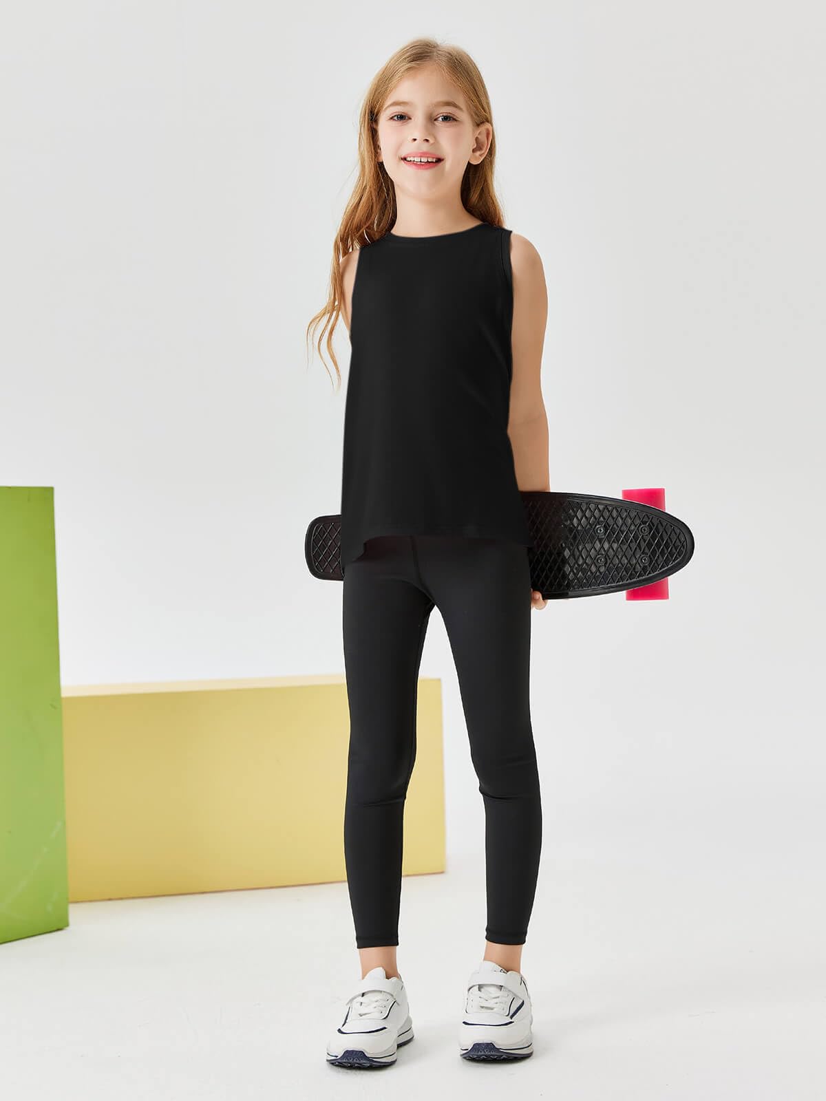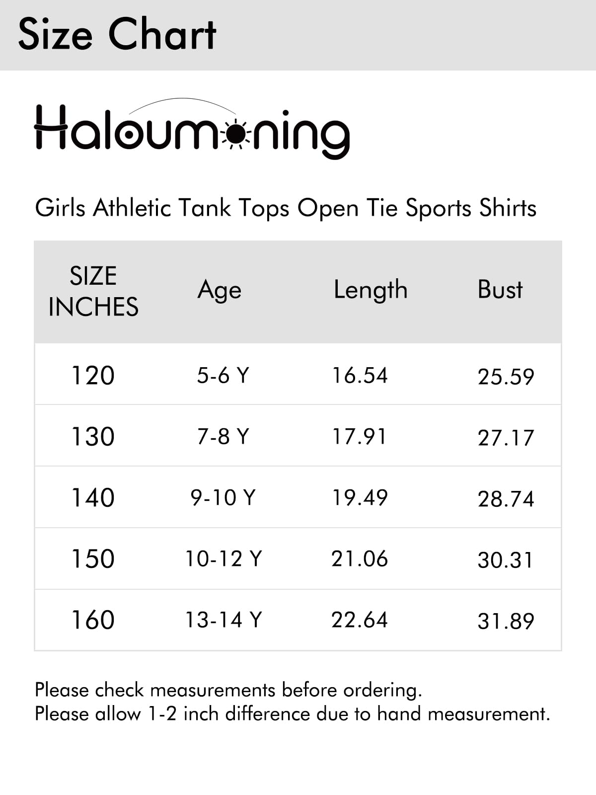 Haloumoning Girls Athletic Tank Tops Open Tie Back Sleeveless Workout Running Tennis Sports Shirts 5-14Years Black