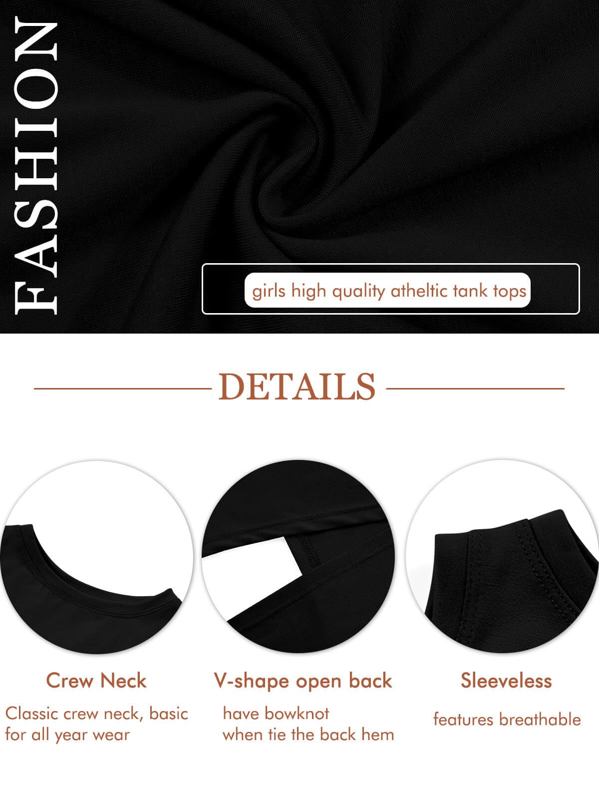 • Unique:Open or tie back athletic tank tops for kid girls, cute and sports, 2 styles for different dress up, V-shape open back when wear natural, and have bowknot when tie the back hem