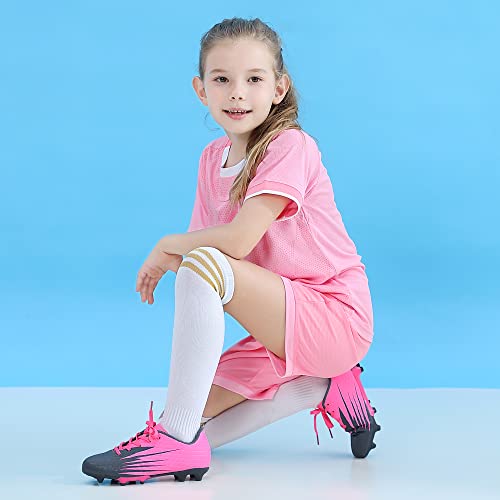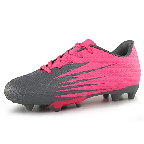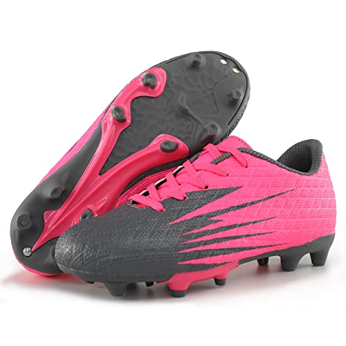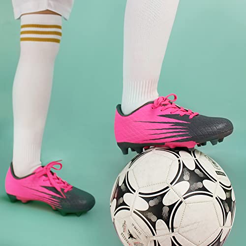 Hawkwell Boys Girls Outdoor Soccer Cleats,Pink PU,4 M US