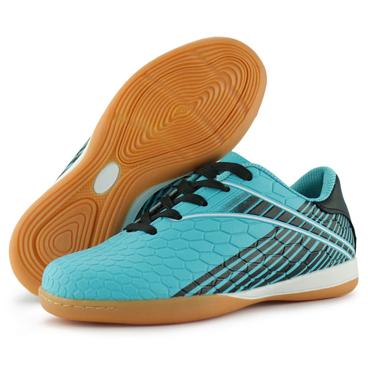 Hawkwell Kids Athletic Indoor Comfortable Soccer Shoes(Toddler/Little Kid/Big Kid), Blue PU, 2 M US