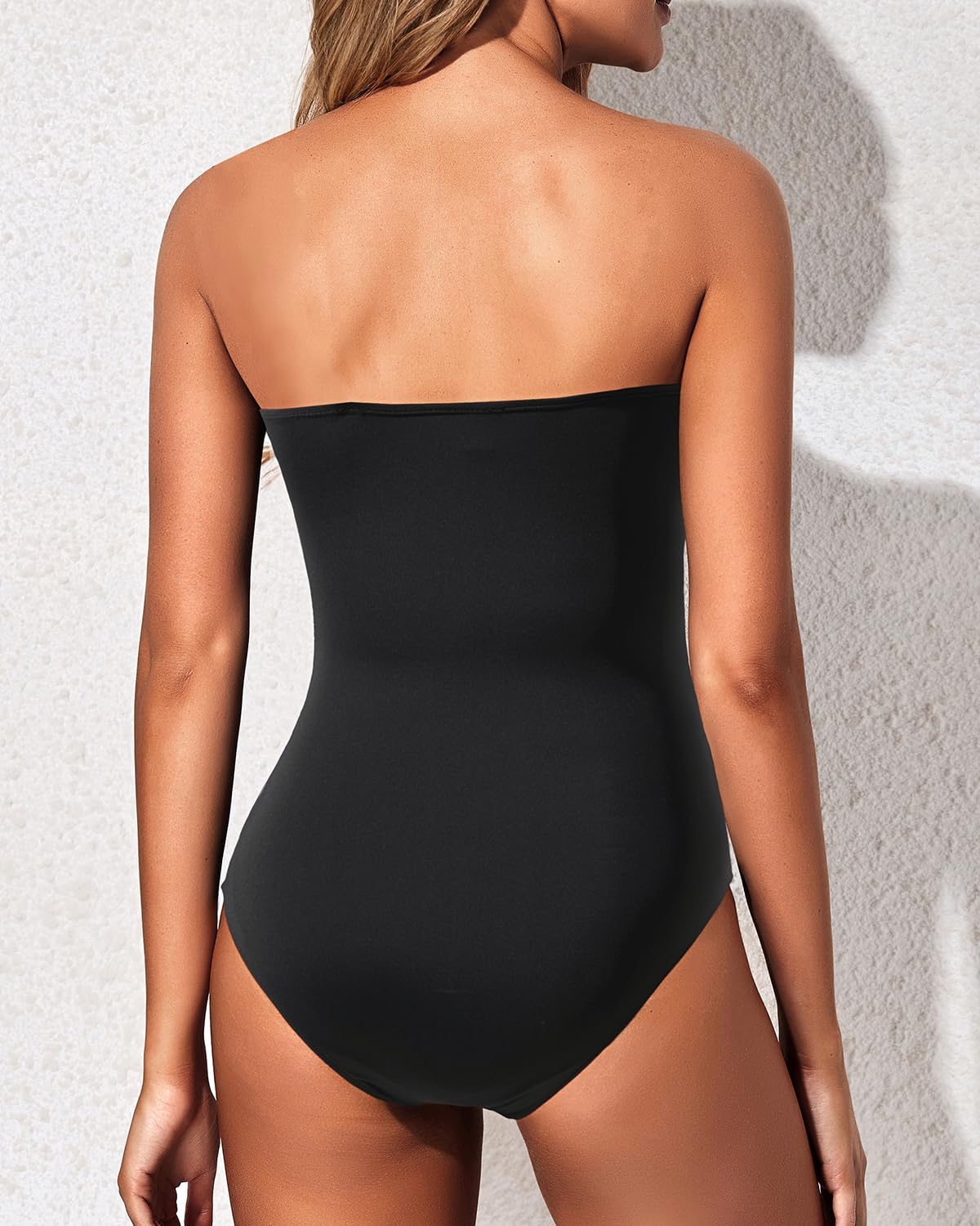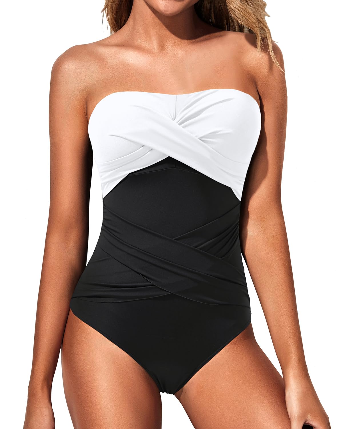 • Strapless One-Piece Swimsuit: Our swimsuit comes with removable shoulder straps, providing two style options: a classic white and black one-piece bathing suit or a bandeau swimsuit. The push-up bra offers excellent support and accentuates your curves.