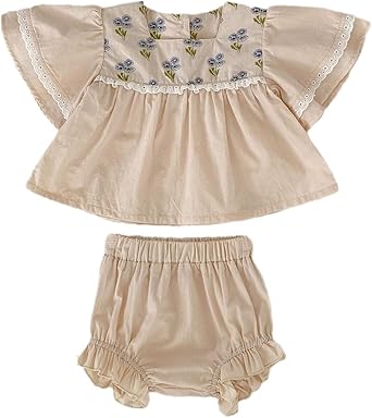 HOOLCHEAN Baby Infant Girls Summer Bubble Short Sleeve Ruffled Tops and Shorts Outfit