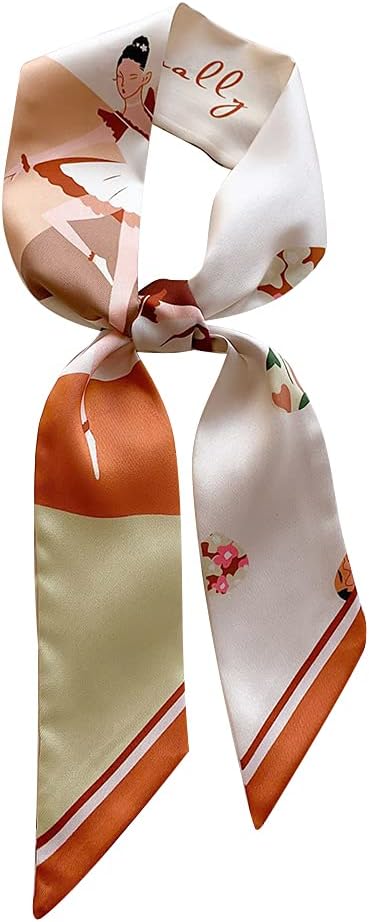 IMLECK Elegant Skinny Scarf Silk Like Neckerchief Hangbag Handle Hair Wraps For Women