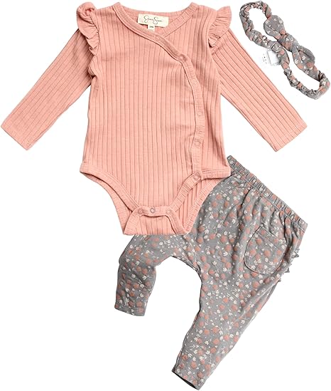 Jessica Simpson Baby Girls' Pants Set ‰ÛÒ Cute Ruffle Bodysuit and Pants ‰ÛÒ Trendy Baby Outfit for Newborns and Infants (0-24M)