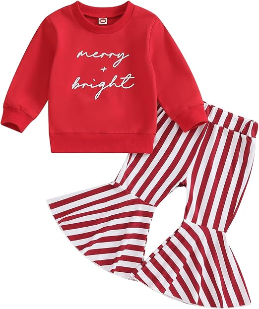 Kupretty Baby Girl Fall Winter Clothes Santa Baby Crewneck Sweatshirts Striped Flare Pants Set Toddler Christmas Outfits