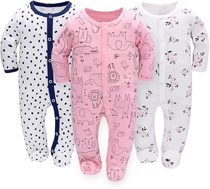 LAT 3 Pcs Infant Girls Boys Footie Onesies Sleeper Newborn Cotton Sleepwear Outfits