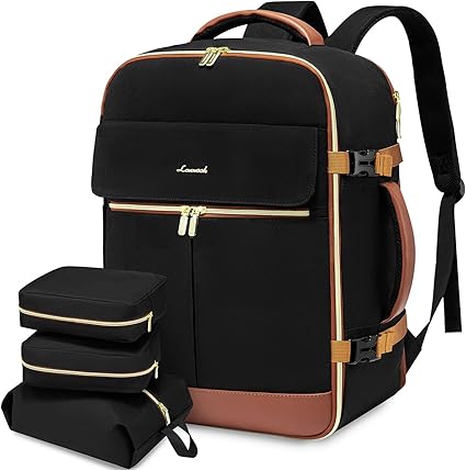 LOVEVOOK Carry On Backpack, 40L Travel Backpack Women with 3 Packing Cubes, TSA Airline Approved Suitcase Bag as Personal Item, Waterproof 17.3 inch Laptop Backpack for Weekender Overnight, Black-Brown