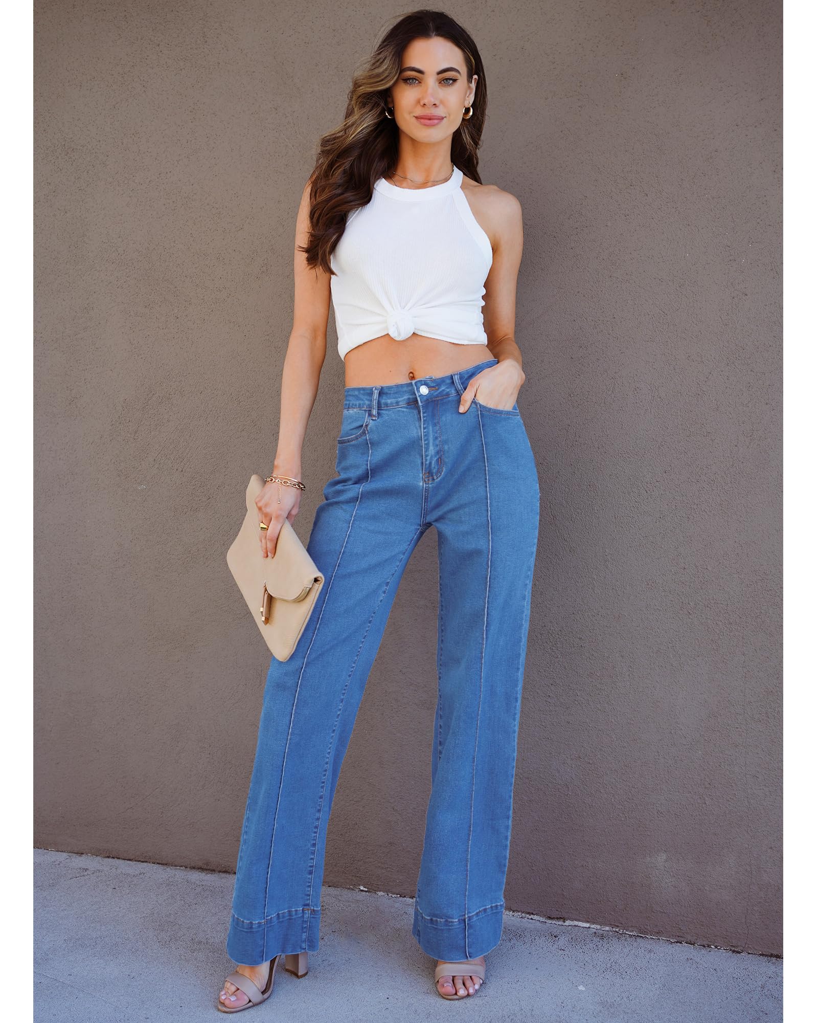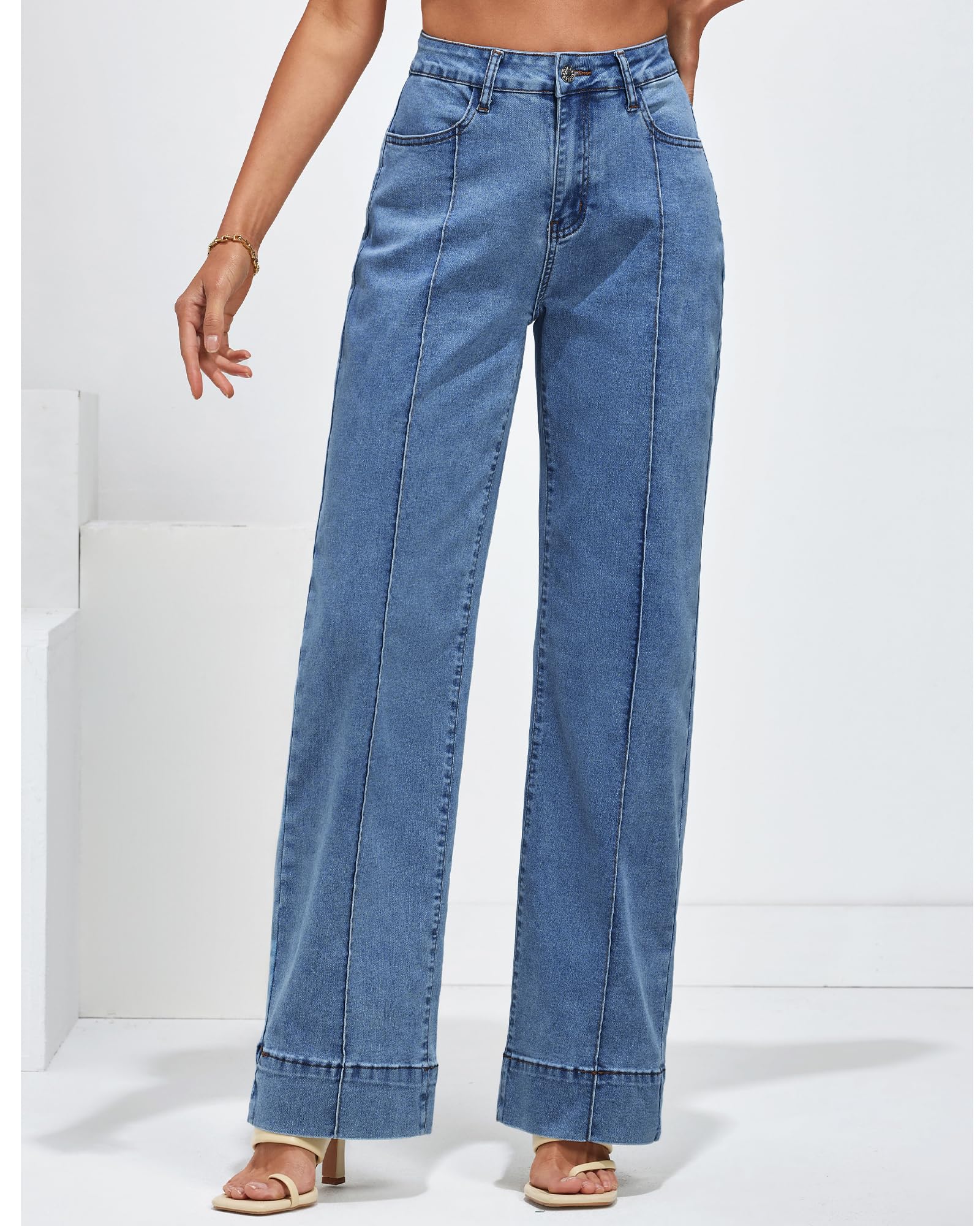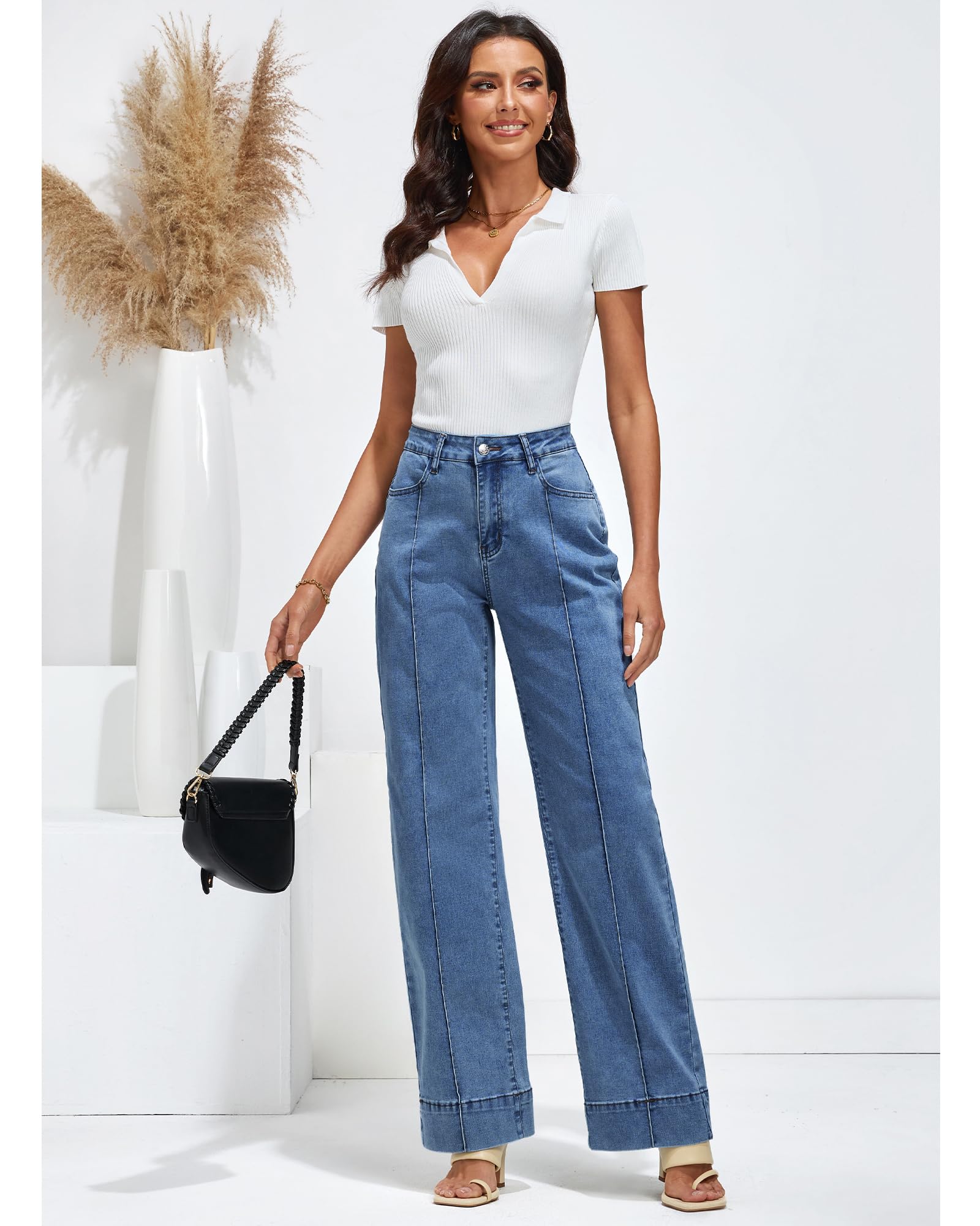 • Stretch: Crafted with elastic materials, the high rise wide leg jeans for women offer flexibility and comfort, ensuring a snug yet forgiving fit that moves with you.