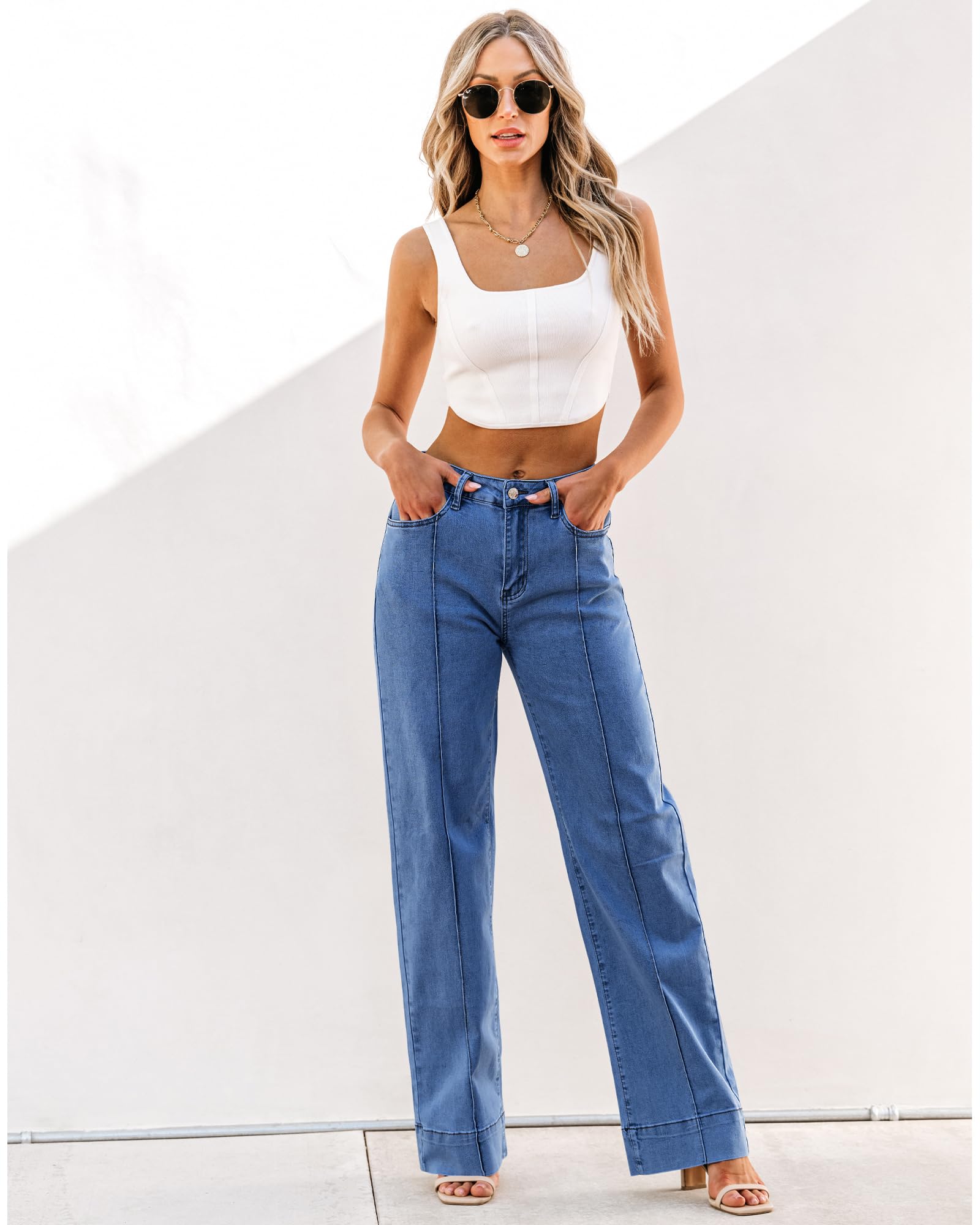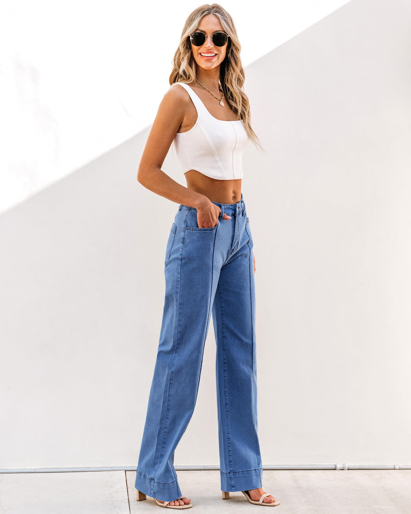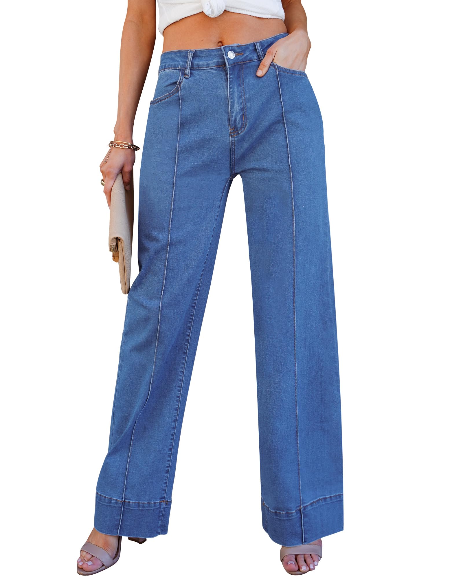 • Stretch: Crafted with elastic materials, the high rise wide leg jeans for women offer flexibility and comfort, ensuring a snug yet forgiving fit that moves with you.