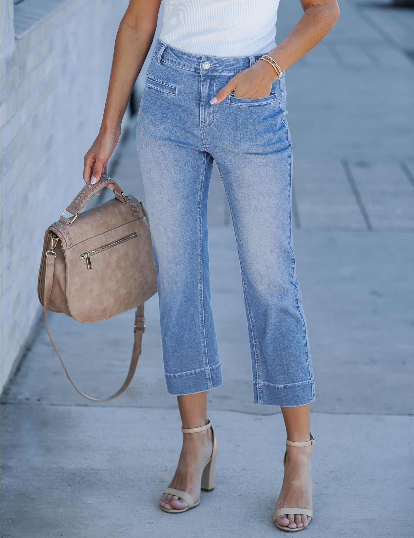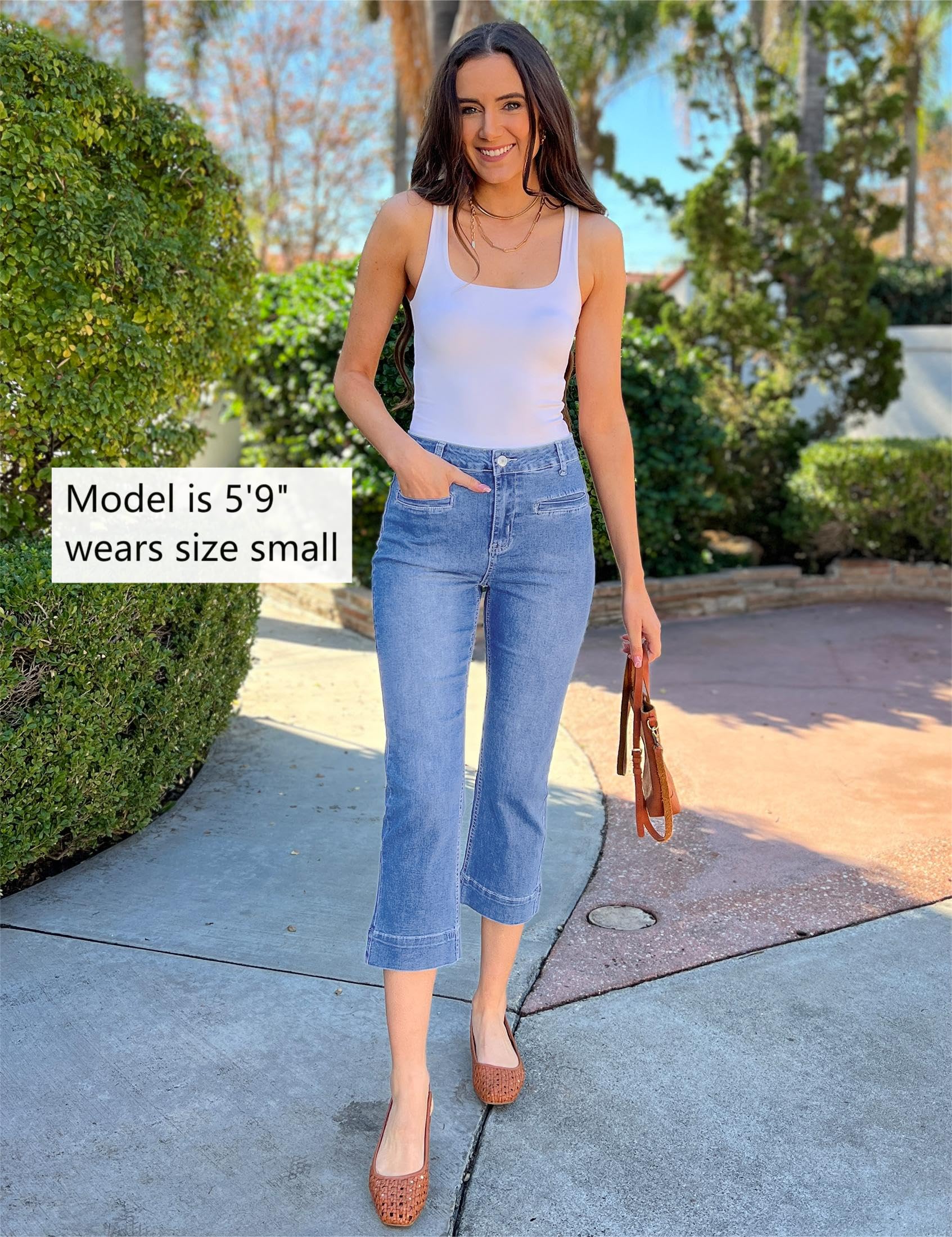 luvamia High Waisted Cropped Jeans for Women Casual Denim Capris Womens Fashion Lakeside Blue Women Jeans Jean Capri Pants for Women Women's Capris and Cropped Pants Size Large Fits Size 12 Size 14