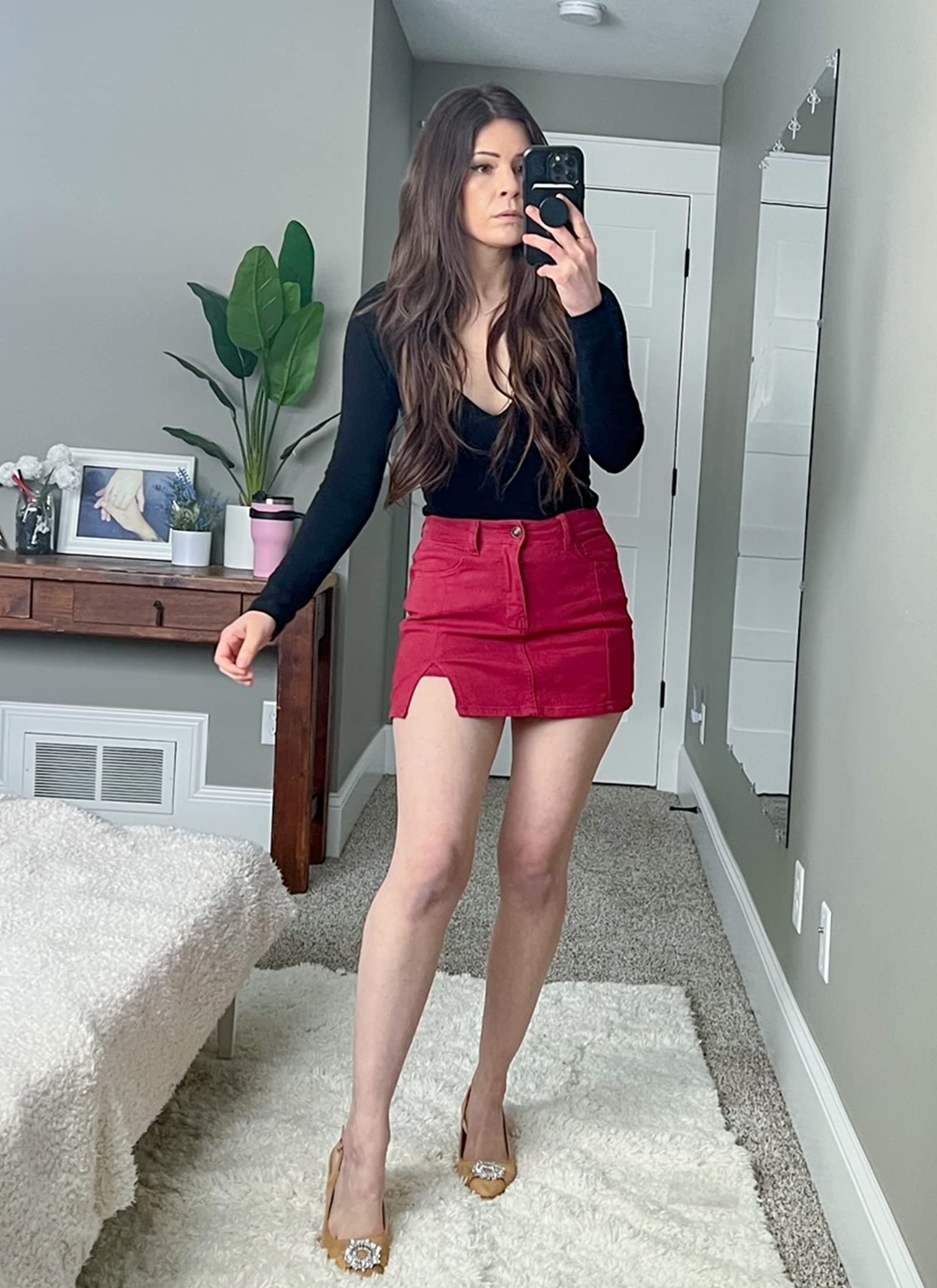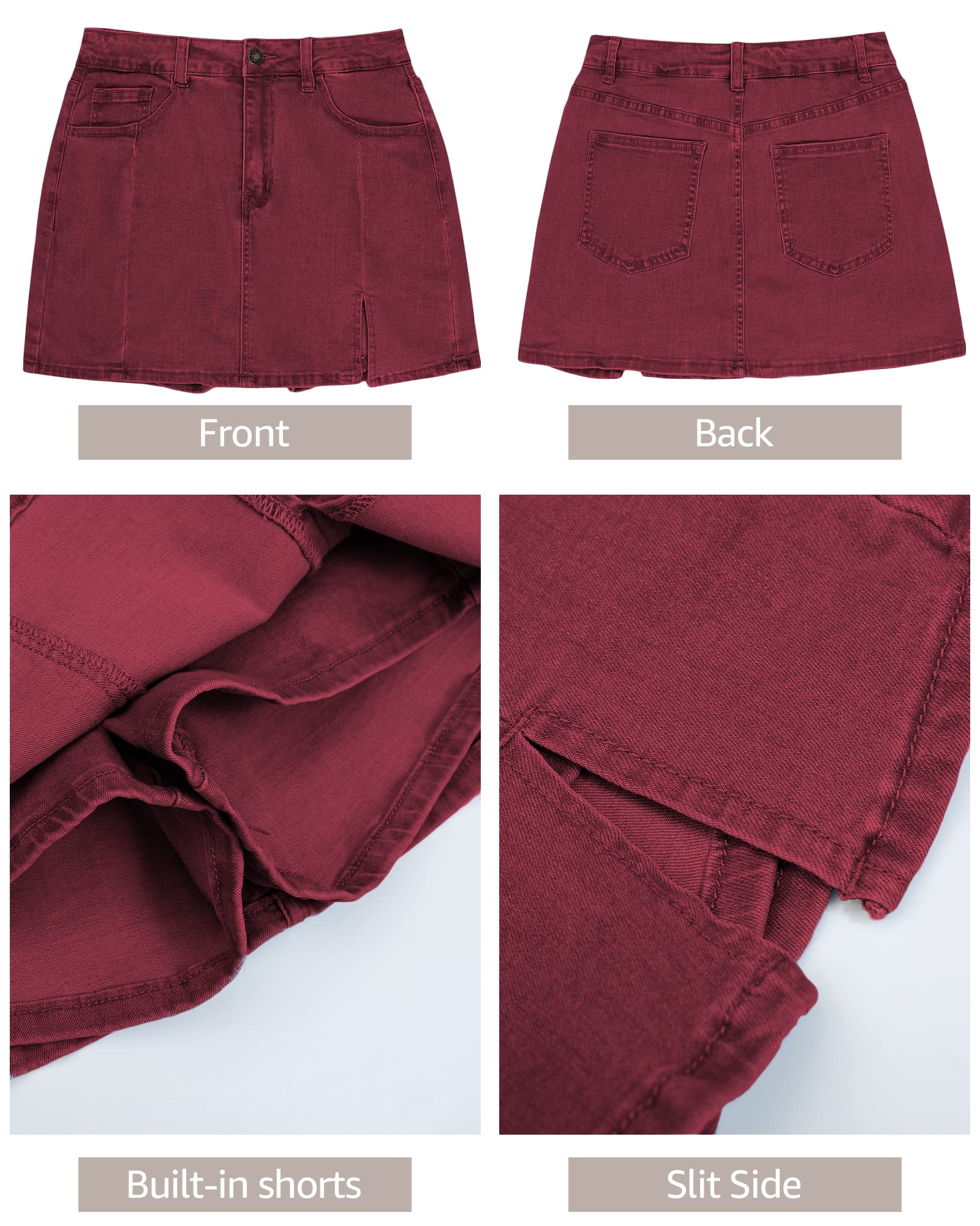 luvamia Skorts Skirts for Women Denim Mini Skirt Side Slit with High Waisted Jean Shorts Stretchy Mini Skirt Jean Shorts Women Stretchy Denim Skorts Skirts for Women Viva Magenta Rumba Red Large