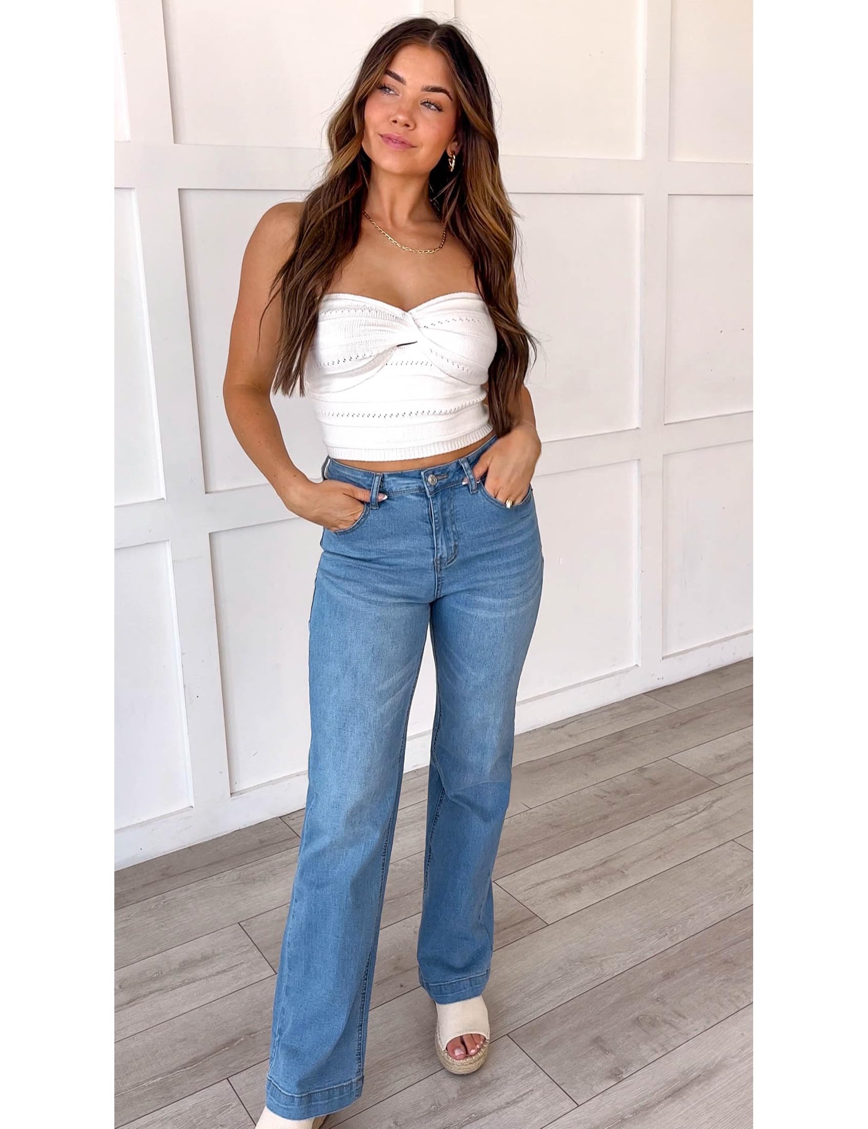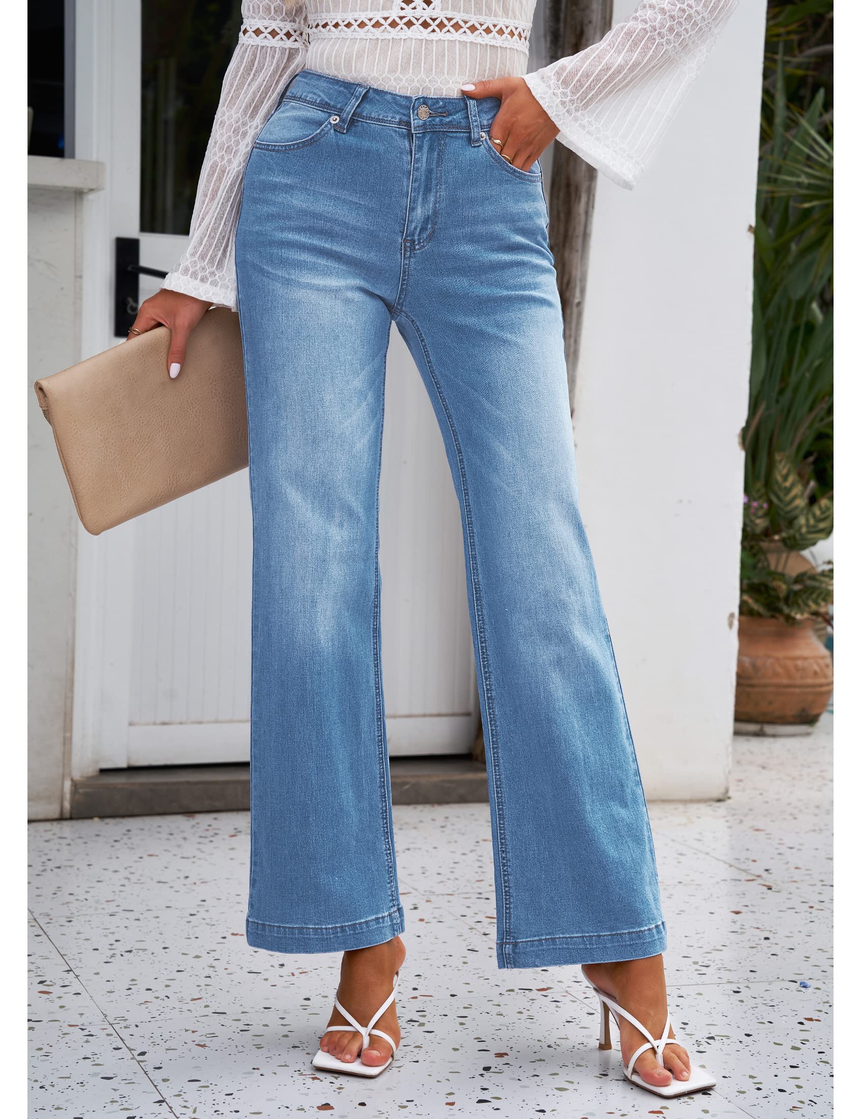• This jeans for women high waist with 32 inches inseam is soft and comfotable, it will bring you a whole day comfort. Unique washed make this wide leg jeans for women be a perfect choice retro outfits.