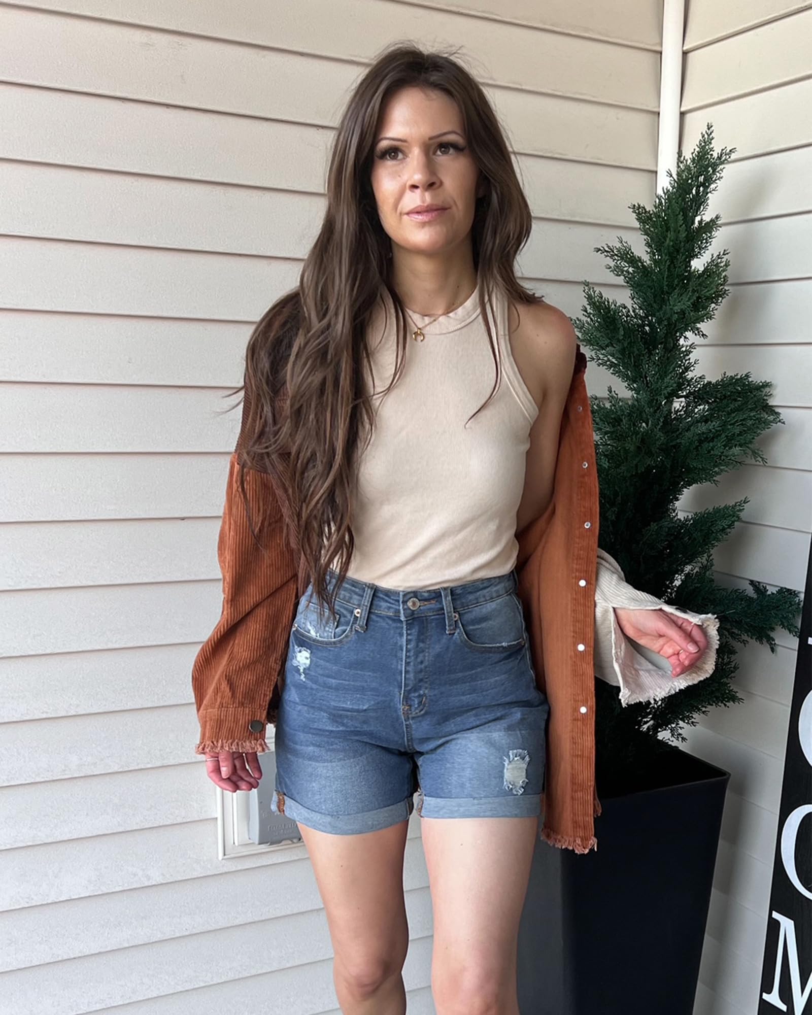 • If you are looking for a ripped denim shorts within your budget, try this one. Women casual denim shorts come with basic five pockets, three in front and two at the back that adds both functionality and style.