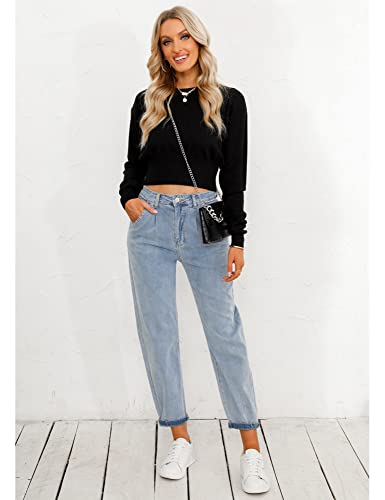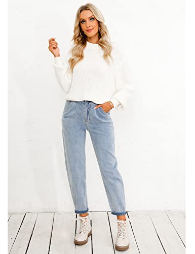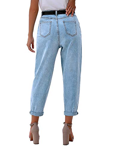 luvamia Women's Classic High Waist Stretch Loose Balloon Tapered Jeans Mom Jeans Womens Tapered Jeans High Rise Jeans Women Trendy Jeans Airy Blue Size Medium Size 8 Size 10