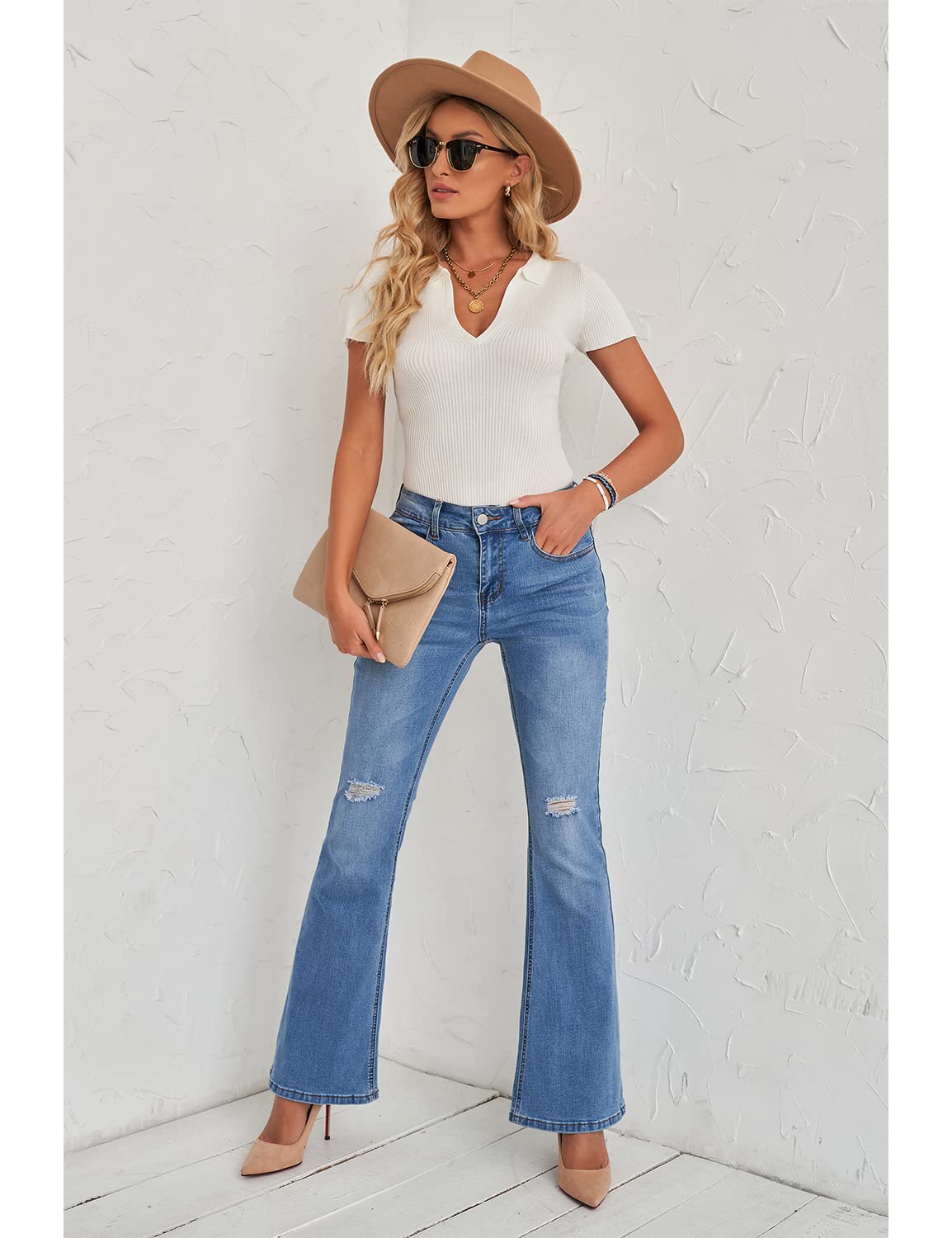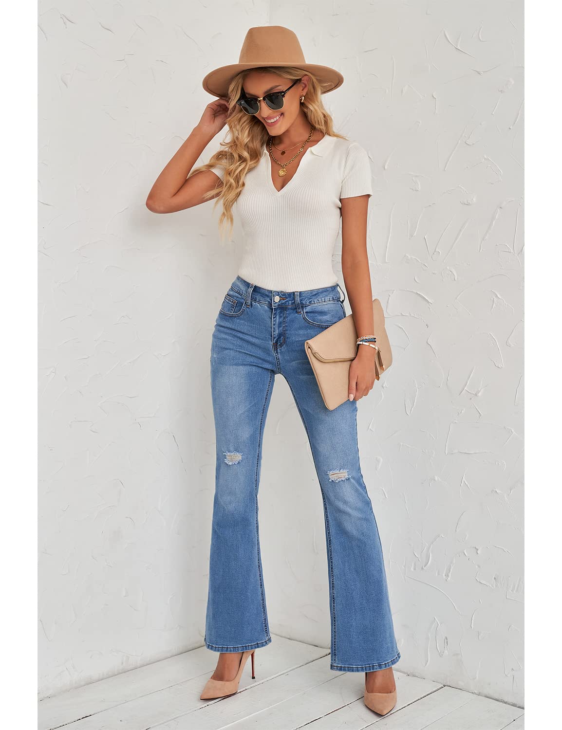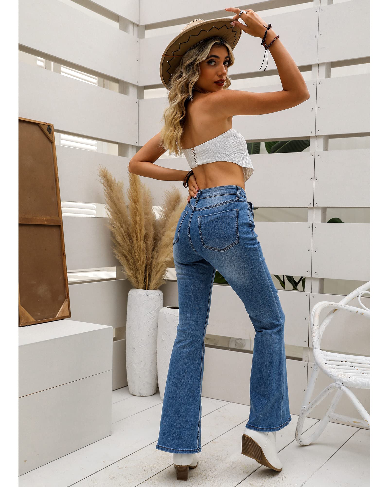 luvamia Womens Jeans High Waisted Butt Lifting Jeans for Women Flare Jeans Blue Jeans for Women Size Small Size 4 6