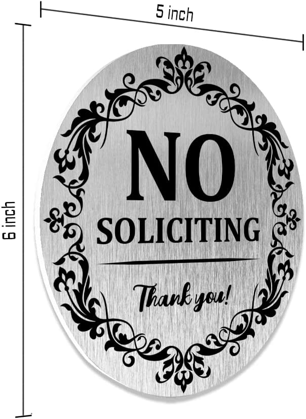 Maoerzai No Soliciting Sign, No Soliciting Sign for Home and Office 6" x 5", Aluminum Oval Classy Quality Metal Self-Adhesive No Soliciting Thank You Sign for Front Door, Window, House, Home, Business, Office. (6 X 5 inch, Brushed Silver-No Soliciting Sig