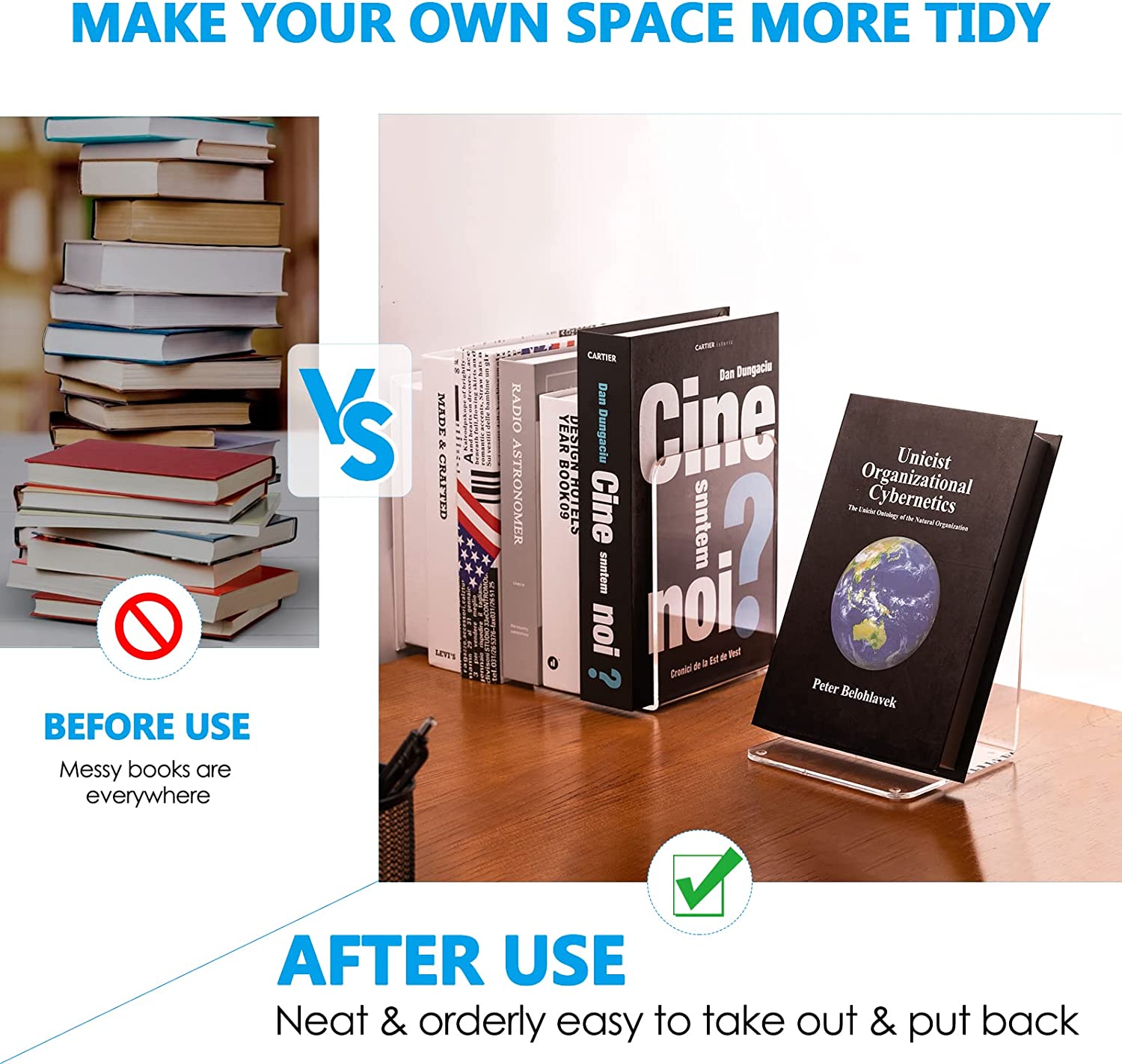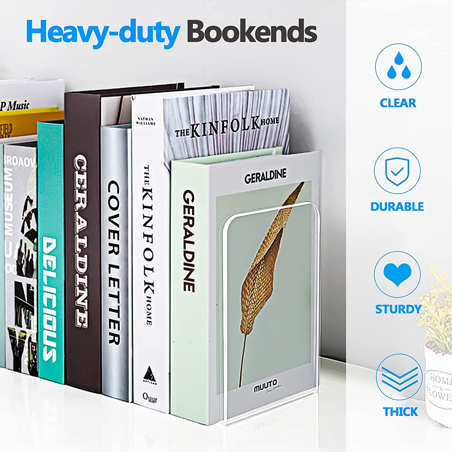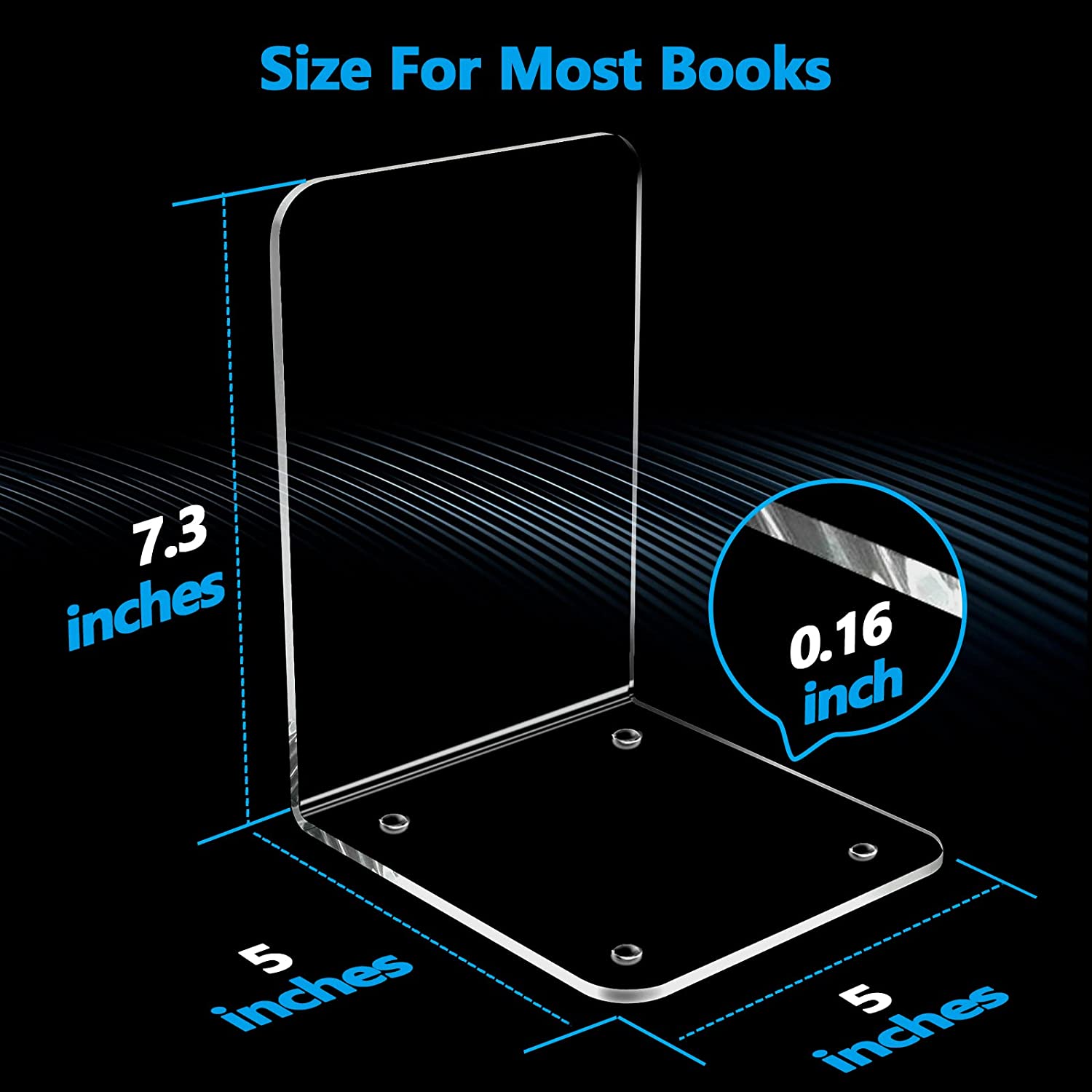 • Durable and sturdy construction: Made from high-quality, clear acrylic material, these bookends are built to withstand regular use without cracking, chipping, or breaking.