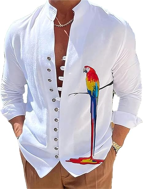 Men's Casual Long Sleeve Button Down Shirt Fashion Baggy Hawaii Beach Shirt