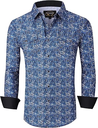 Mens Cowboy Cut Embroidered Western Long Sleeve Snap Button Down Shirt