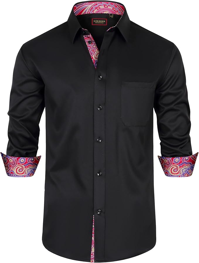 Mens Dress Shirts Long Sleeve Dress Shirts for Men Inner Contrast Button Down Casual Shirts for Men Big and Tall